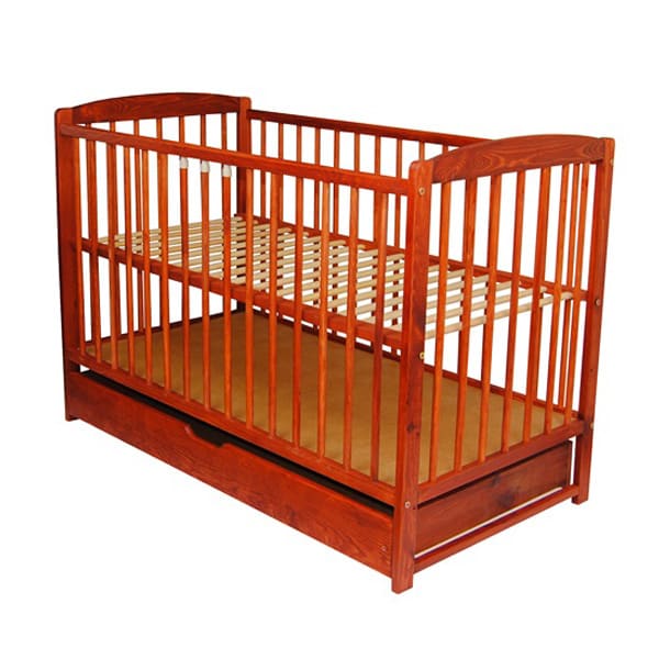 Produkcja łóżeczek drewnianych w naszej firmie bazuje na wytrzymałych materiałach, zwłaszcza na drewnie sosnowym. Z tego surowca powstają stabilne łóżeczka o szerokości 120 cm. Są one odporne na eksploatację przez wiele lat. Produkty tego typu mają większą masę niż te wykonane ze sklejki, ale umożliwiają łatwe przesuwanie. Ich trwałość ma znaczenie zwłaszcza w przypadku ruchliwych maluchów, które stają przy szczebelkach i napierają na nie całym ciężarem ciała.